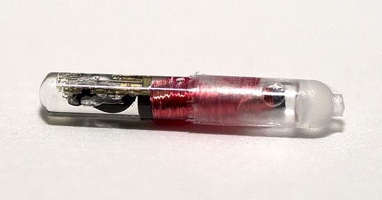 The RFID chip, pictured above, is the size of a grain of rice. They have